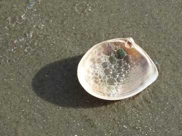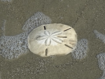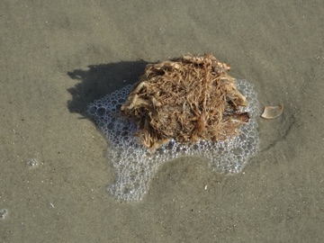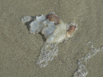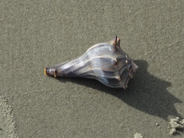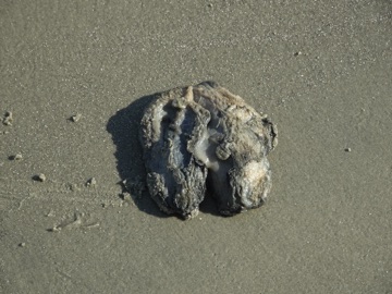 Here is some of the stuff we found on the beach. There was driftwood, and there were jellyfish, sand dollars and a number of interesting shells. There was also a lot of sand which is more interesting than it sounds.