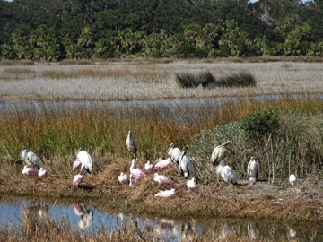 We said goodbye to Little St. Simon's Island in the glow of morning. It was cold and windy, and we were a small party departing, so we took the smaller but faster boat rather than the more larger, more sedate one. It was a wild ride but a short one. We had a 300 horsepower motor and blasted over the water leaving a cloud of spray. It was cold, and the wind was fierce, but it was over quickly.