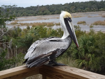 Remember this pelican. This is the one that decided to fight the wind. We saw him flapping furiously overhead before he made an emergency landing on our spotting tower.