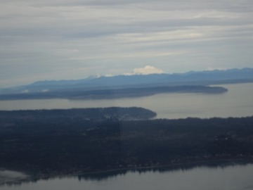 At some point over the peninsula we dropped below the clouds and followed the coast. It was clear flying though one couldn't see very far inland. We were heartened however when we flew over the Dungeness Spit Light House. We couldn't see Striped Peak or Hurricane Ridge, but we could see the Ediz Spit just fine. Then there was the Port Angeles airport probably wondering all the talk of fog was about.