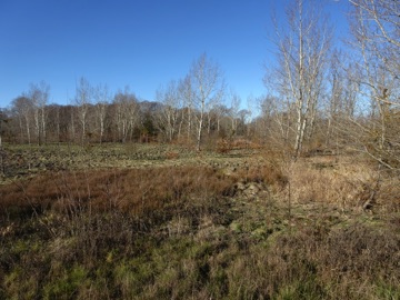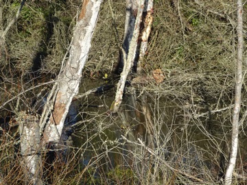 It's almost winter, so flowers were few and the trees were bare. The ponds were full of ducks, and we could hear frogs croaking somewhere. We had a great view of an osprey, a distant view of an eagle, a silhouette of a jay, a great blue heron and a rather odd mystery bird a bit too far to photograph properly.