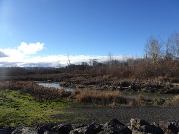 We went to the Dungeness Dike after the big storm. It had rained all night, and the wild winds had been blowing. The river was high, and the land was flooded. The new dike held.