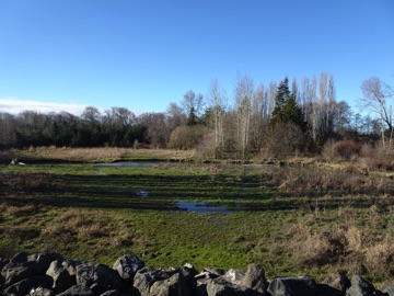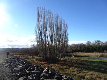 We went to the Dungeness Dike after the big storm. It had rained all night, and the wild winds had been blowing. The river was high, and the land was flooded. The new dike held.
