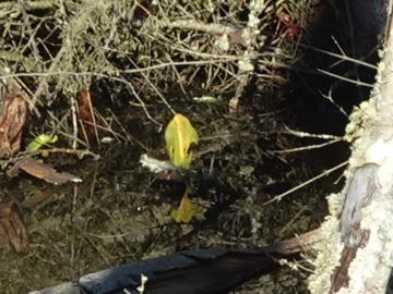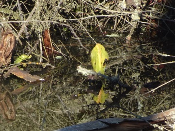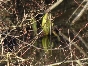 It's almost winter, so flowers were few and the trees were bare. The ponds were full of ducks, and we could hear frogs croaking somewhere. We had a great view of an osprey, a distant view of an eagle, a silhouette of a jay, a great blue heron and a rather odd mystery bird a bit too far to photograph properly.