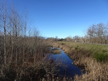 It was almost spring like at the Dungeness Dike. It was a bright sunny day, and we had started at the schoolhouse rather than near the creamery. There was an eagle on display and bright shiny water. We were sure it was still winter, but we saw some Queen Anne's lace in bloom, a wooly bear caterpillar out crossing the trail and, to our great surprise, the first skunk cabbage of the year. It has been a mild winter, so maybe this isn't as odd as we think.