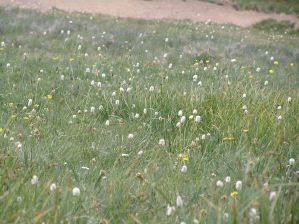 We always liked those old fashioned nature documentaries with their portentious announcers. We were up at Hurricane Hill today, and the dirty sock plant (Polygonum bistortoides) is in bloom. This plant is noted for its hearty aroma. The scent hasn't really ramped up yet, but as we passed this field (shown at the right), we could almost hear the ominous bass voice, "... a field so full of dirty sock plant, it is known as 'the hamper'".