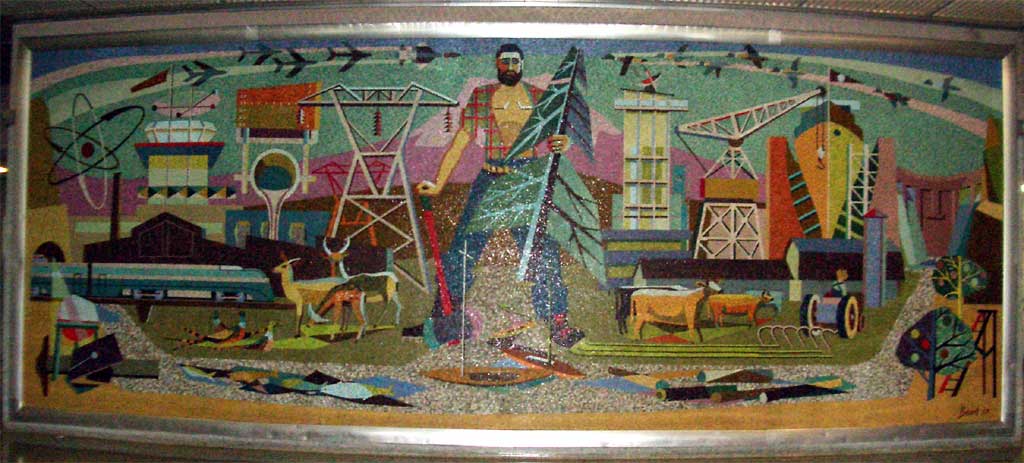 There is still ship work, and aerospace, and timber. There are still farms out there, and deer and birds. Unfortunately, there do not seem to be any artists producing more modern versions of this type of mural. In the 1930s, Fortune magazine was full of this type of art, representing resources and industry. Nowadays, fewer people think this kind of thing is interesting. This is sad because it is still important to think about where things come from, and not leaving such knowledge to a handful of presumed experts.