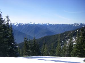 The mountains are still standing. They are still covered with snow, though the surface is packed and a bit slick for cross country skiiing. The road is clear but for a few stretches of well sanded ice. The sun still shines. We were up there snowshoeing on the trail from Hurricane Ridge to the Hurricane Hill trailhead. A lot of people were just hiking the trail in boots or hiking shoes. Did we mention that the mountains are still standing?