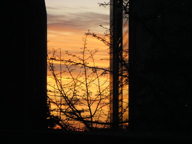 Just for the record, here are our two trees illuminated. We had to wheel out the better camera, the one with shutter and aperture control, to capture the tree light. There's probably a special mode for this on our little camera, but we can never figure out what all those modes are good for.