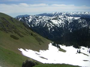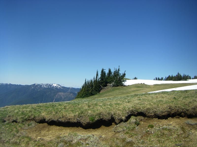 We've fallen behind updating our web page. That's because we've been busy. We've been into Seattle a bit - more on that soon - and we've been getting up to the high country. The road between the lodge at Hurricane Ridge and the Hurricane Hill trailhead has been plowed, but not yet opened to traffic, so we've been walking it and a tiny bit of the Hurricane Hill trail. It's rather hypnotic, and the flowers are already in bloom.