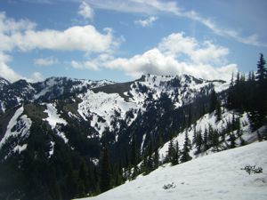 The views, as one might expect, are spectacular. There is still a lot of snow on the mountains in every direction, and the alpine flowers are coming into bloom, even near the summit. The fields are adorned with a carpet of glacier lilies, and we saw at least one marmot. It may have been two, or it may have been just one who followed us to the summit. All told, the high country is open for the season and is as spectacular as ever.