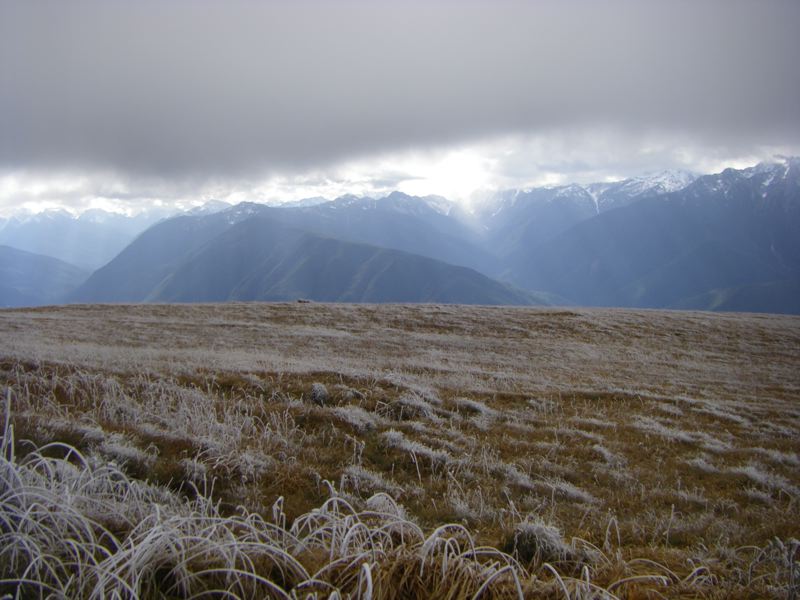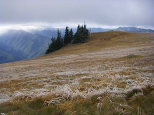This was a hard post to compose. There were so many amazing photographs of the gray skies, majestic mountains and frost covered trees and grasses that we just gave up and chose eleven pictures when we could have chosen dozens. Judging from the webcams and weather reports, the ice seems to have melted on Hurricane Hill, so we are glad we managed to capture our amazing walk in the sky.