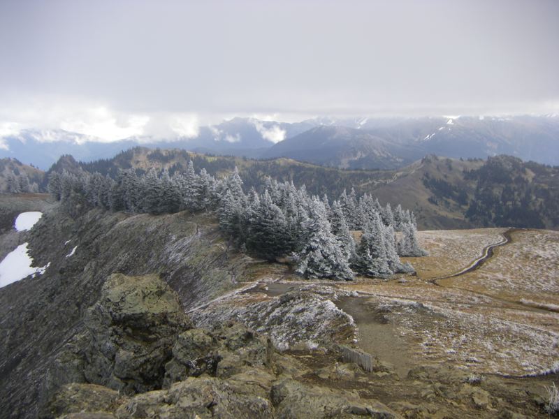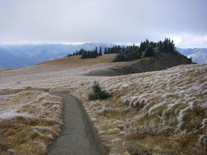 Winter has been playing with us this year. We had a cool summer, then a warm spell, and then our first frosts and first snows. The Lake Angeles Trail was a winter wonderland covered with snow that has most likely already melted. Still, it's a wonderful foretaste of the winter season.