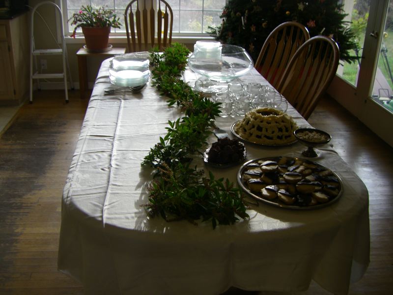 As production moves along, we block out the table into the major Christmas food groups: desserts, savories and egg nog