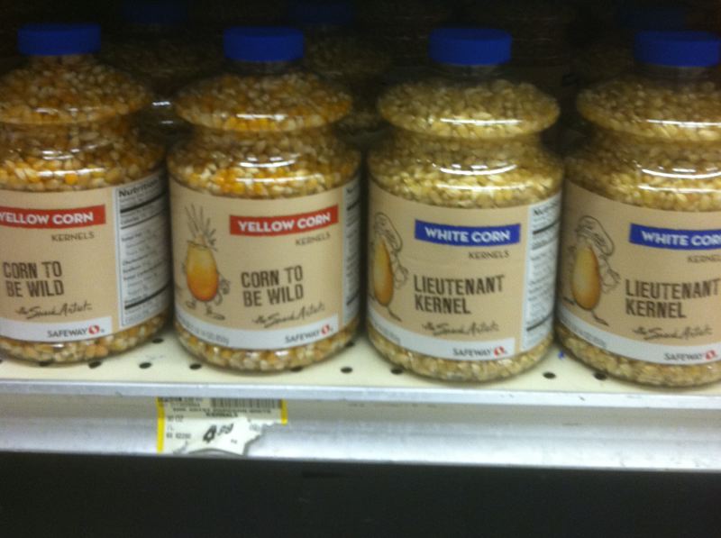 That container looks like Orville Redenbacher's, but the label says Corn to be Wild and Lieutenant Kernel.