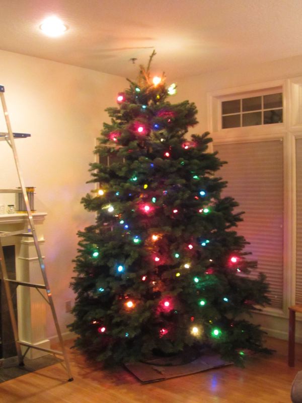 In the tree yard it didn't look like much, but we knew it had promise. It was big, nine and a half feet big, and it took two burly guys to get it to our living room and set it up in its industrial steel stand. It drank nearly a gallon of water in its first 12 hours indoors. That was just the beginning. Then came the lights, an inner ring of LED lights for depth and an outer ring of incandescent lights for the true glow of Christmas.