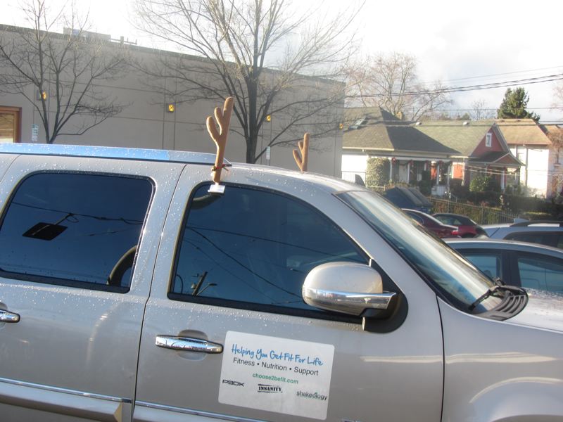 This year's trend - antlers for your car - We saw another set with lights, but they drove before we got our camera out.