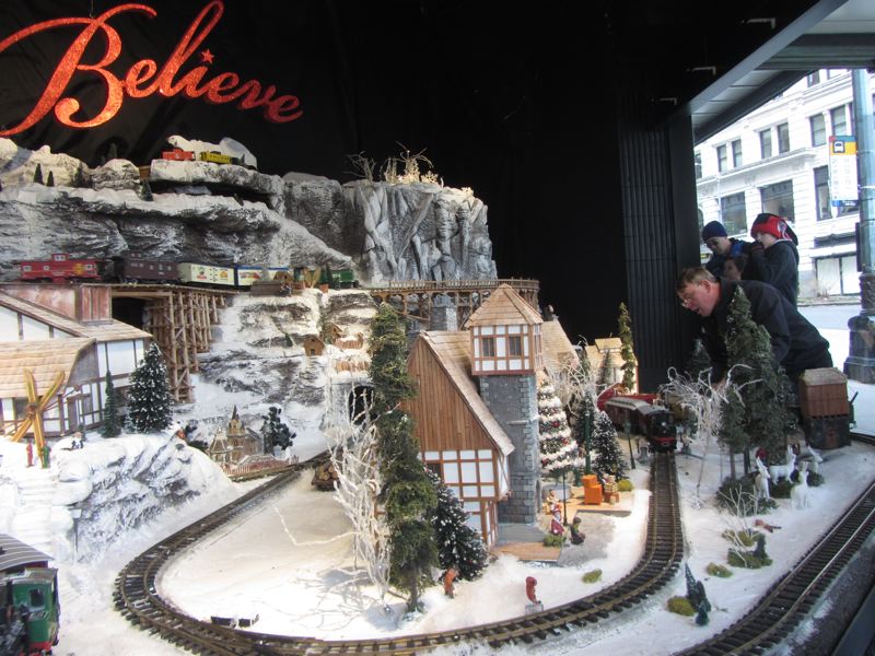 Christmas trees, poinsettas, and a model train set