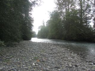 This is the season that the salmon come home to the rivers to spawn and die. It's great news for the fishermen, and for salmon in general, but not so much for the fish themselves. We noticed the scent near the Dungeness Dike parking area on Towne Road. The lot was full of fishermen, or rather, their trucks with their permits in the window. The fishermen themselves were out along the river.