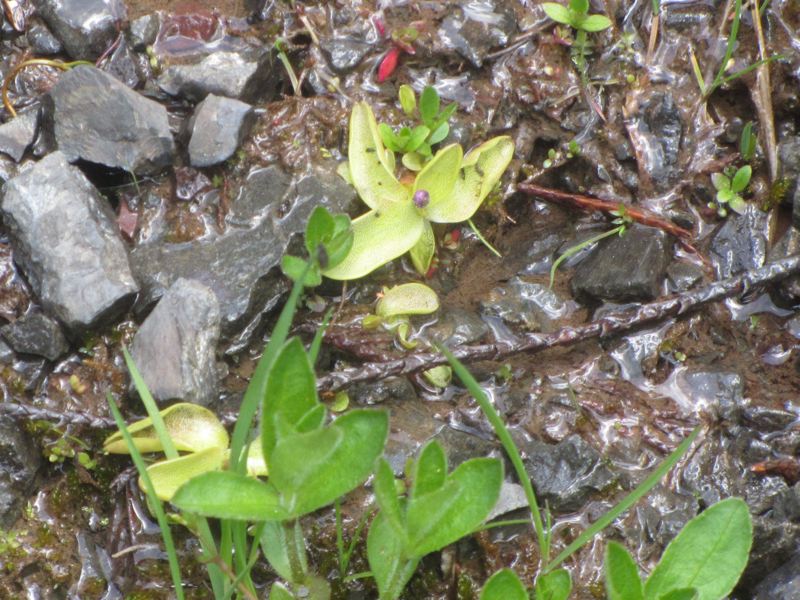 This is a carnivorous plant growing not far from the parking lot. Click to enlarge the image and you can see the trapped insects.