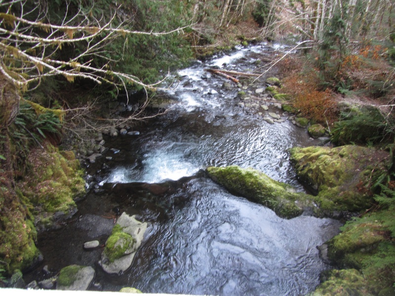 We took a short walk from Whiskey Bend down to the Elwha River. Despite the recent rains, the river is far from flooded, but the trail was pretty. The foliage color is nothing like the glory of a New England autumn, but we could see definite signs of fall. We also saw the new viewing station for the river where the old dam used to be.
