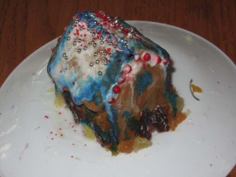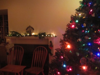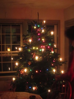 We Kalebergs haven't quite reached peak Christmas yet. We're still mining the season, but we did have our annual grownups Christmas party. It's a choucroute year, but by the time the choucroute comes out of the oven, laden with smoked pork chops, sausages, duck breast, smoked pheasant, pork hocks, westphalian ham, potatoes, carrots, juniper berries and sauerkraut, everyone is hungry, so we didn't manage to take any pictures. Still, if you look closely, you can see our illuminated fruitcake, some half and half cookies, sweetmeats and candied grapefruit peel.