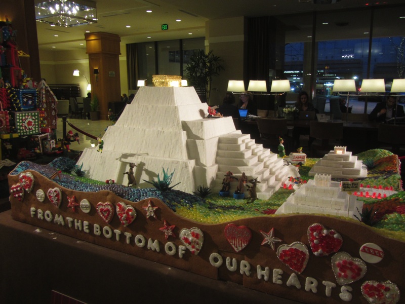 Every December we try to get to the Sheraton to see the the wonderful seasonal gingerbread concoctions in their lobby. This year the entries were better than ever, and they really helped us get into the mood for Christmas.