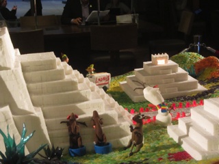 We aren't too sure about this Aztec temple with its motto - "From the bottom of our hearts." Uhh, really. This is Christmas.