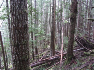The climb from Barnes Creek up to the Mount Storm King overlook is simply the hardest trail we hike on any regular basis. The first 500 feet, up to the relatively flat ramada area, is horribly steep with switchbacks and tree root staircases along the way. Well, we managed to climb up to about 1100' which wasn't all that far from the overlook at 1350', but it was all we could do.
