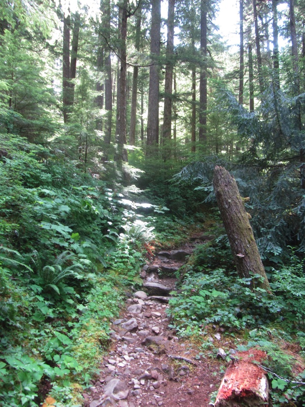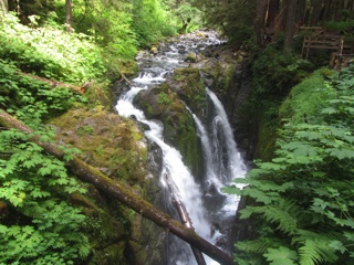A lot of people visit Sol Duc Falls. They walk from the parking lot to the falls, then they head back. This is definitely worth while, but there are all sorts of trails that run past the falls. One of our favorites is the trail up to Deer Lake which starts on the far side of the bridge over the falls. It's a rocky, lumpy trail, so it is hard going, and Deer Lake itself was a bit beyond us. We just weren't up to a 1600' climb.