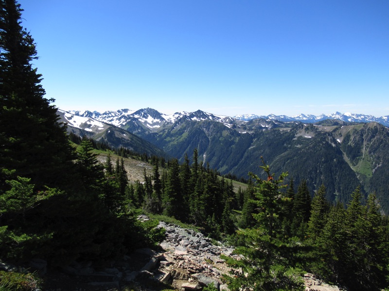 The Olympic Range appears above Sunrise Peak after 1000’ of climbing.
