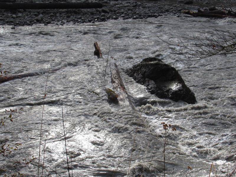 Olympic Hot Springs Road along the Elwha has been closed at Madison Falls again. This time because of flooding. We took a walk up along the road. Indeed, there was a stretch of it under water. We made the most of our wandering and got some nice views of the river. We also checked out Madison Falls. This has been a wet autumn.