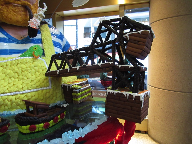 Every Christmas we look forward to the Christmas gingerbread village displays in Seattle. Usually, they are at the Sheraton downtown, but this year they were across the street. As usual, the display was for the benefit of the Juvenile Diabetes Research Foundation, and some serious design and baking talent was involved.