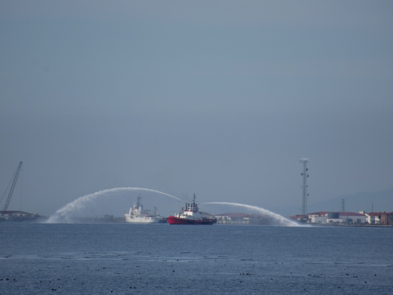 A fireboat in the harbor