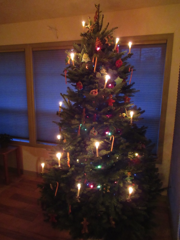The cookie tree with its candles lit