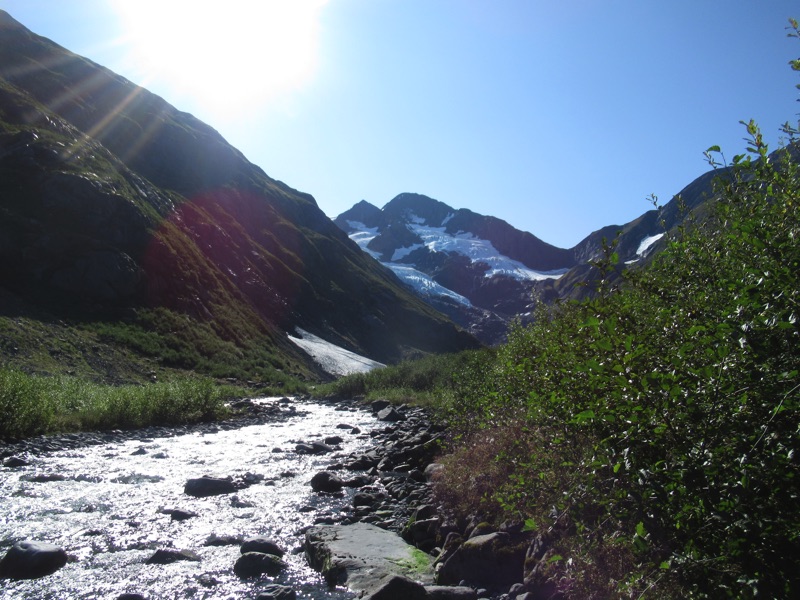Our first day in Seward we hiked towards the Exit Glacier. We followed the trail along the river bed up towards the glacier melt line. We walked out on the river bed a bit and enjoyed the bright day and wonderful views.