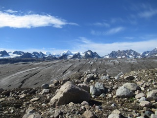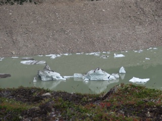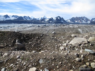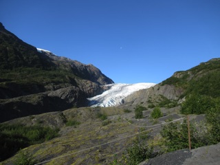 To be honest, we never got that close to the Byron Glacier. We followed the trail to the clutter of rocks that the glacier left in its track. We made our way along the rocks. Then, we came to a wall of rocks, perhaps 15-20 feet high, and we decided that we had seen plenty of glaciers and that it just wasn't worth climbing that many rocks to see yet another one. Maybe we were getting jaded. More likely, we realized that this was a bit more climbing than we were good for.