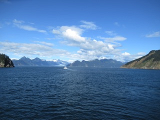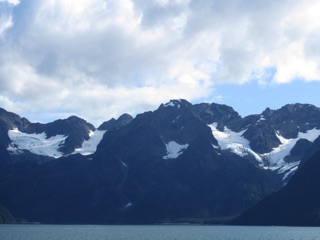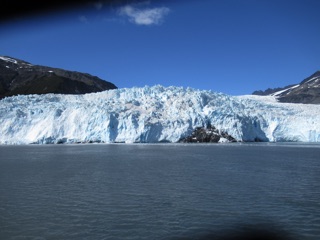 The scenery was spectacular. The harbor itself was beautiful, blue water surrounded by mountains and glaciers. We headed south towards more spectacular scenery. We took a detour to visit an orca, then headed into the next fjord over and made our way to a spectacular glacier.