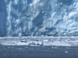 The ice was covered with seals, and we lucked out and saw a few chunks of ice break off of the glacier and plunge into the icy water.