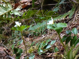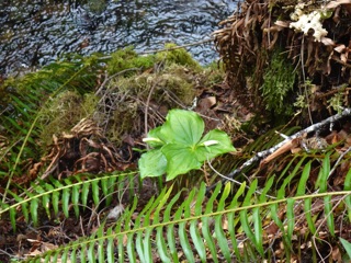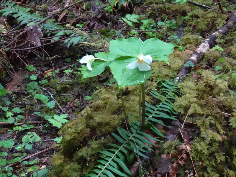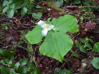 We've been getting back into shape, and that means climbing the Lake Angeles Trail. It's a great training trail in that it heads up steeply for 2400', but even shorter climbs offer a wonderful forest hike. To our surprise, the first trilliums were in bloom, mainly along the lower reaches of the trail. We didn't make it much past the foot bridge over the stream about 720' above the trail head, but we heard reports from other hikers that the lake was accessible. That gives us something to work towards, though it may be a while.
