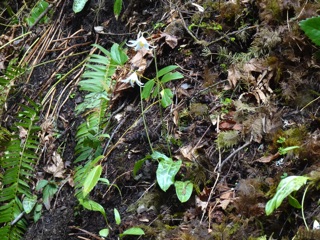 We finally followed the Elwha detour from where it leaves Olympic Hot Springs Road about a half mile past Madison Falls to where it rejoins the road past the old Elwha campground. It's a 250 foot or so climb, but it goes through forest, and the forest is full of columbines, trilliums and other spring flowers.