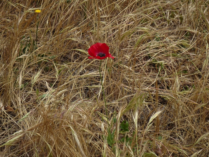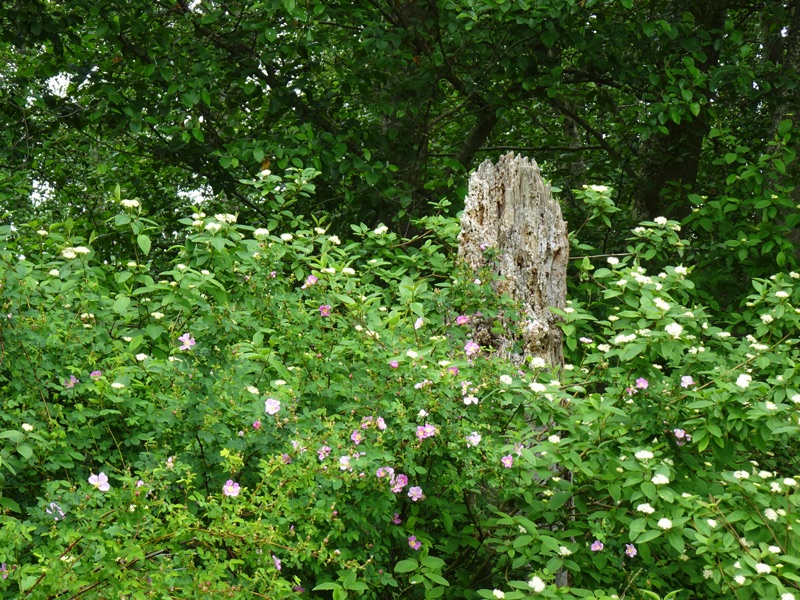 The Dungeness Dike Trail off Towne Road is another hike that changes dramatically from winter to summer. The grasses grow taller, the bushes and trees leaf out and block the views of the river. The brush by the trailside grows higher and encroaches on parts of the trail. This time there were a few red poppies and bushes full of fragrant wild roses.