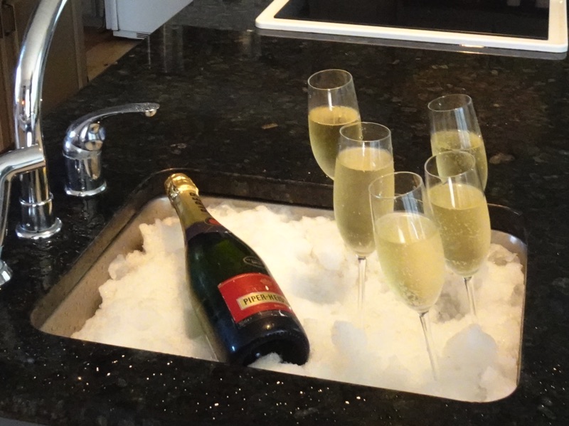 We held our Russian Easter party again. That meant pelmeni, home made sausage, grilled lamb loin, smoked salmon and blini with salmon roe and butter and more butter. There was also champagne and the Defense of Moscow. Once again, the Monster Napoleon was on the march, and once again Moscow was defended by fire, ironically ignited by means of French brandy. It was an excellent defense, so there was lots of Moscow / baked Alaska left for all present.