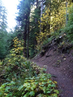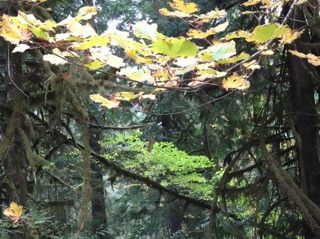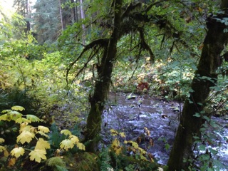Now that it is raining again, after a long dry summer, we returned to the Little River Trail. Since the trail follows the Little River, it is at its best in the rainy season. The best part is about 35-40 minutes out where the trail leaves DNR land and enters the national park. We were not disappointed on our last hike. The river was lively, the trail smelled of rain and there were drips and droplets about.