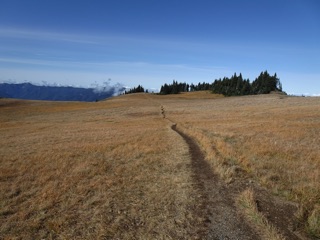 We were originally planning another hike, but the sky was so blue and the day so pleasant that we had to get back to Hurricane Hill while the road is still open. The road from the lodge to the Hurricane Hill trailhead often closes before Hurricane Ridge Road. It was fairly busy, but it was definitely shoulder season. We had to park at the nearer picnic area, but that just added 15-20 minutes to our hike.