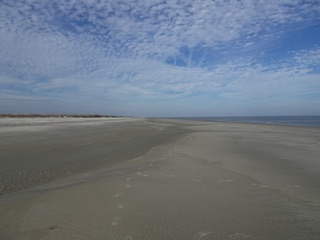 We took a flatboat out to Little St Simons Island. It was a very pleasant ride on calm waters. On our previous visit, it had been wet and icy. All of us passengers huddled under blankets. This trip was quite different.