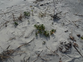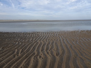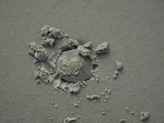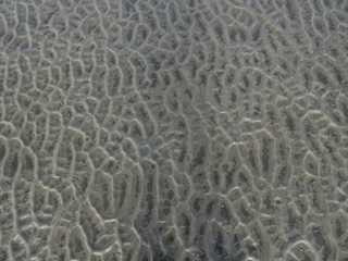 One of the nice things about having a guide was having someone to point out and explain things. We had seen and collected sand dollars before, but our guide showed us the distinctive pattern of holes that they leave when they bury themselves at low tide. He even dug one up for us so we could see the moving spikes on its underside. (Of course, he returned that one to its hole.)