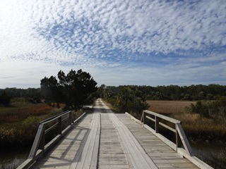 We took the flatboat from the Hampton River Marina to Little St Simon's Island. As soon as we were on land, we took a short walk north up and along the Needlerush Trail. We felt right at home. Then, we went and watched the sunset before dinner.