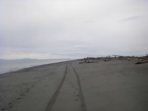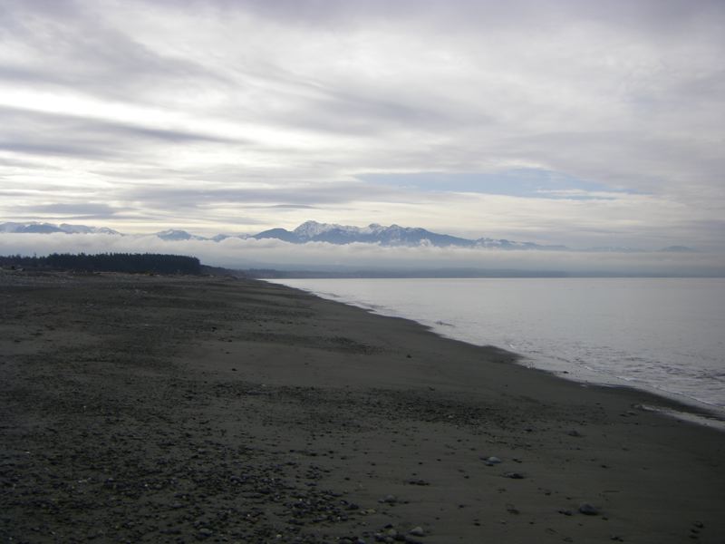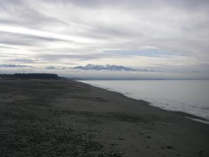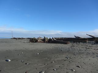 We've been getting some good tides at Dungeness Spit, so we decided to do a bit of exploring. The tide was low and there was a lot of sand on the beach, so it was easy going. The view of the mountains was stupendous as you can see in the picture to the right.