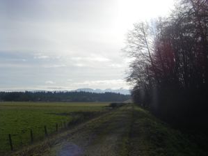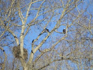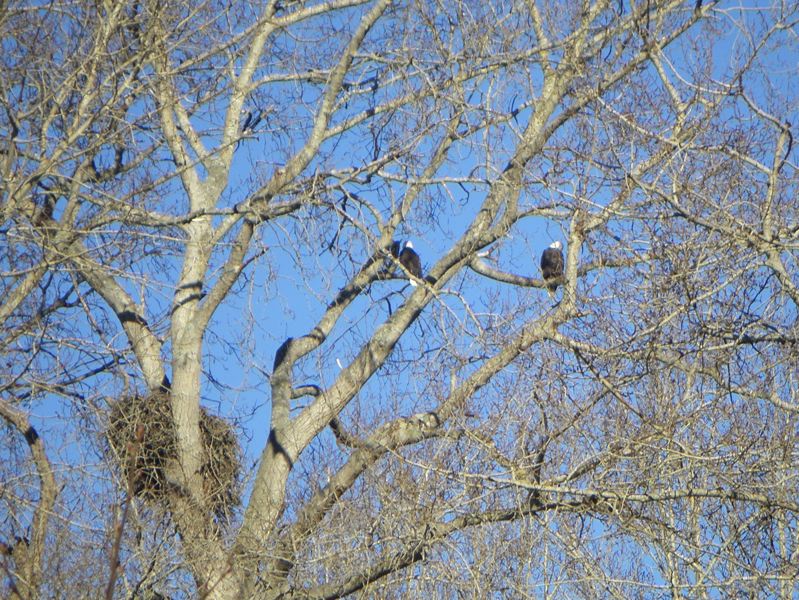 The trees were full of bald eagles at the Dungeness Dike Trail. There were at least eight, more likely a dozen of them. Was it the season? The river in flood? We had seen a couple in one of the trees along Towne Road, but the spotting was even better along the dike itself.